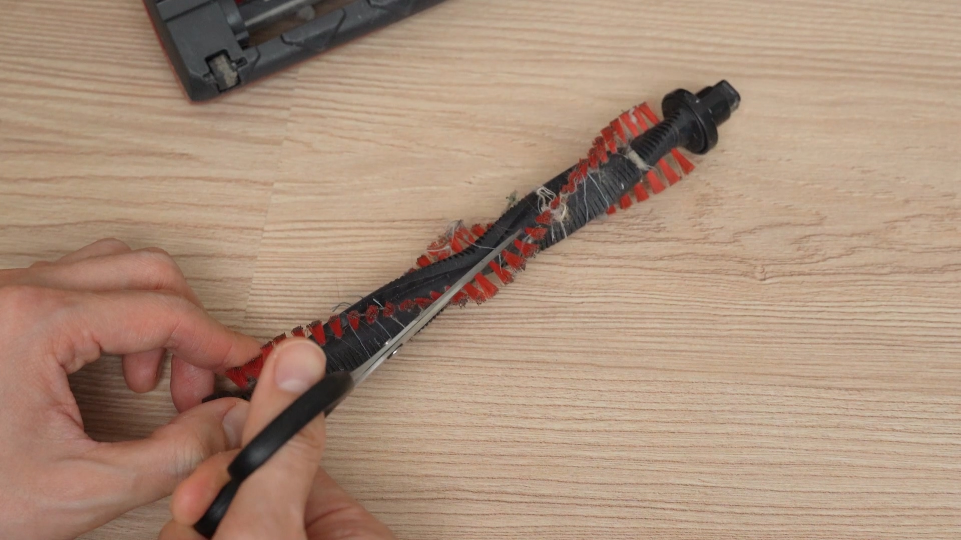 이런 것이 얽켜있어 청소 성능이 떨어지게 되는데요. 요즘 청소기에는 머리카락을 절단해주는 기능이 있지만, 실제로 사용했을 때 잘 잘리지 않았어요. 그래서 직접 잘라주는 과정이 필요해요!