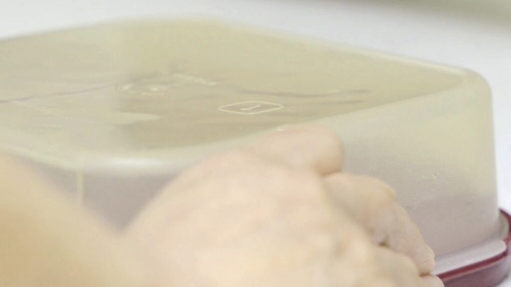 그럼 이제 냄새 제거를 시작해볼까요? 두 번째 쌀뜨물을 김치통이나 반찬통에 부어두고 하루 동안 실온에 그대로 놔두세요. 하루가 지나면 한 번 뒤집어서 골고루 냄새가 빠지도록 해줍니다.