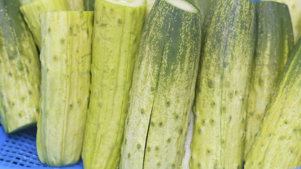 👉 끓인 소금물을 쓰면 살균 효과는 물론, 오이 숨이 빨리 죽어 아삭함이 오래가요.
