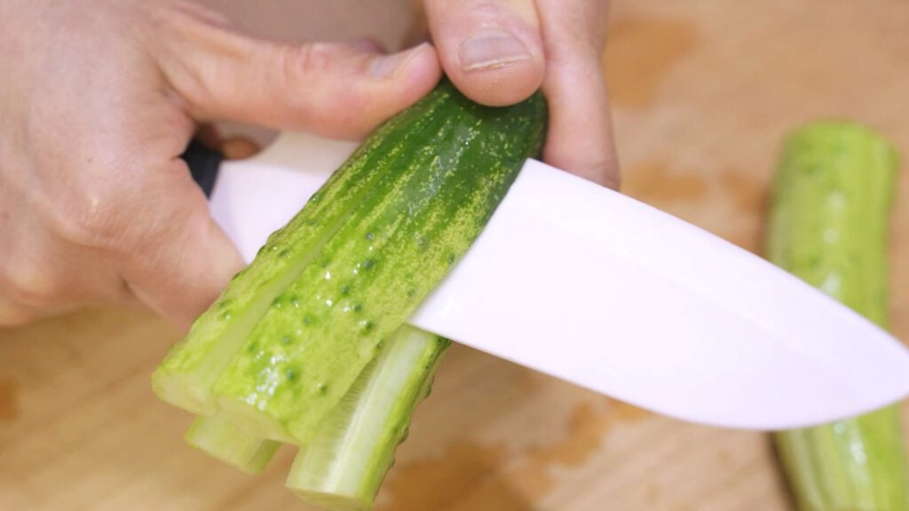 그래야 오이가 갈라지지 않고 양념도 새지 않아요.