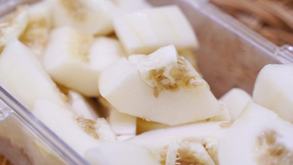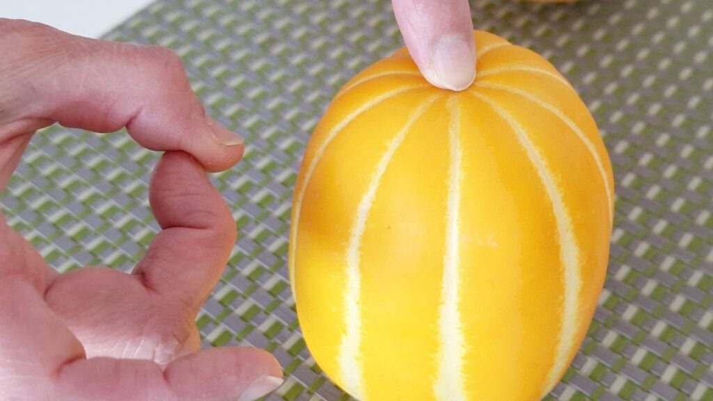 참외를 손으로 만졌을 때 적당하게 단단한 느낌의 참외를 고르세요. 물렁이는 참외는 이미 무른 상태이기 때문에 무조건 피하는 것이 좋습니다. 반대로 너무 딱딱한 경우도 덜 익은 상태이기 때문에 피해 주세요.