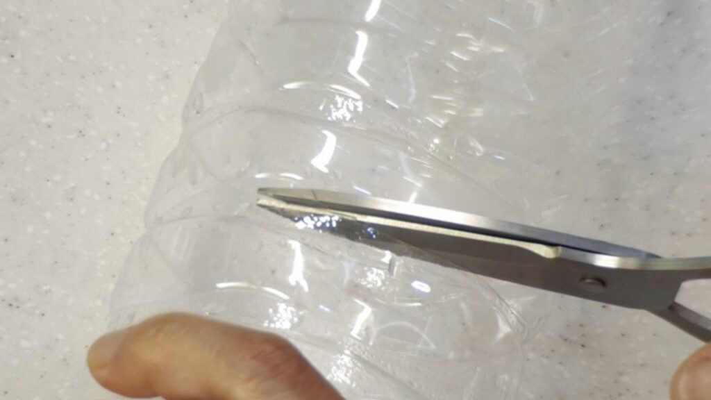 먼저 페트병 하나를 준비하세요. 그리고 절반 정도 크기로 잘라 줍니다. 너무 크거나 작지 않고 일반 큰 물 페트병 기준으로 절반 정도면 충분해요.